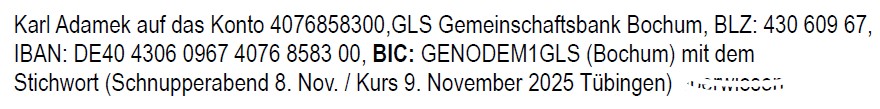 Bitte Kursgebühr auf folgendes Konto überweisen: Link klicken – vielen Dank 🙂